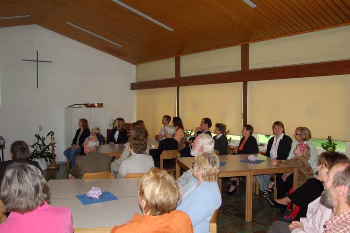 Bei Sonnenschein, der den Dauerregen und das Hochwasser des vorangehenden Tages vergessen ließ, besuchten rund 120 Menschen den Gottesdienst. Viele blieben im Anschluss zum Kaffeetrinken im Gemeindehaus. Die Damen des Bastelkreises hatten wie immer verschiedenste leckere Kuchen vorbereitet, Herr Rautenberg bot Gegrilltes an.