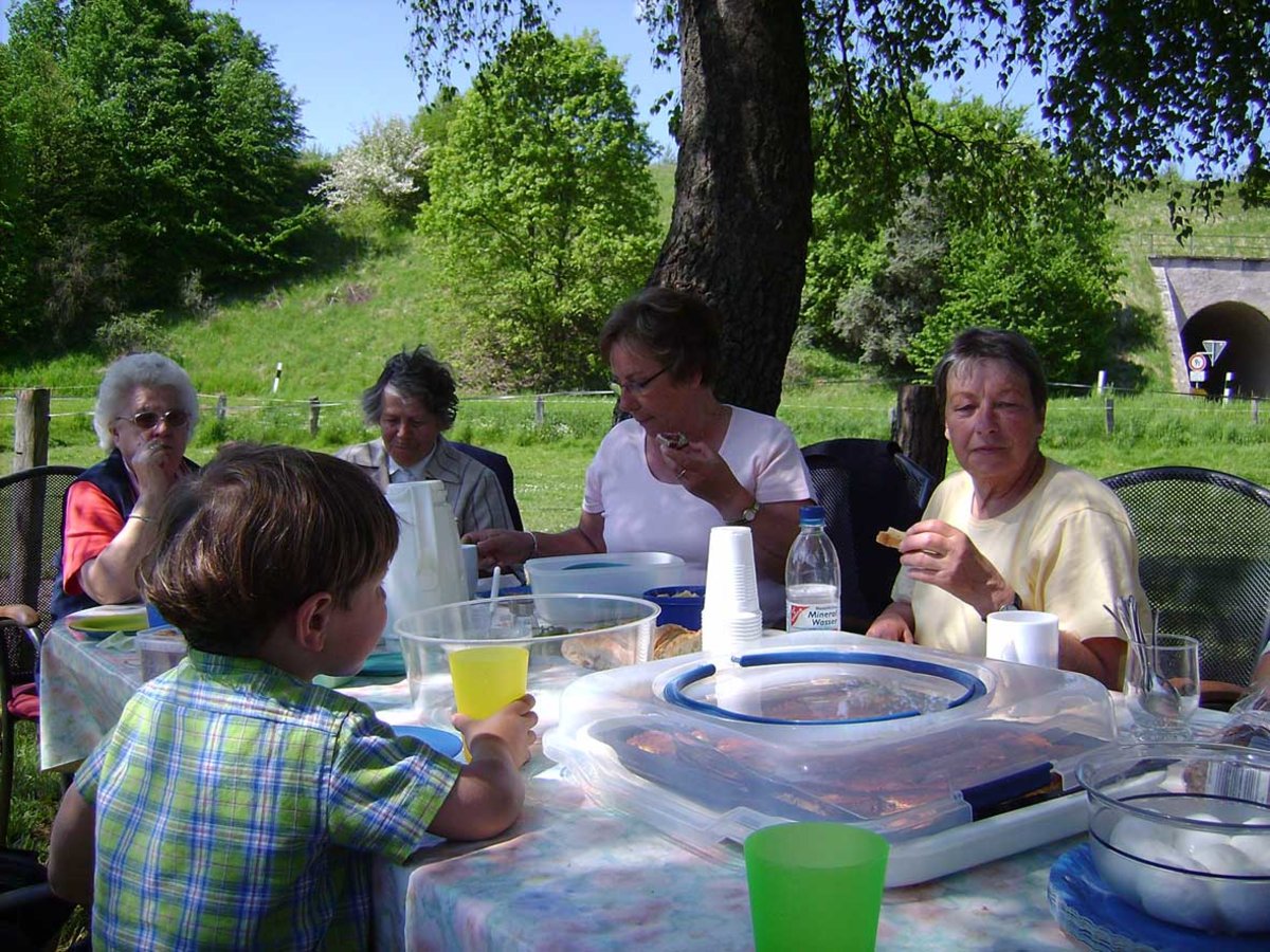 Aus Lutter machten sich einige Spaziergänger auf den Weg nach Neuwallmoden und mussten erleben, dass ein Harzclubmitglied, ein pfadfindererfahrener Pastor und eine Landkarte noch lange keine Garantie für einen kurzen und schnellen Weg ergeben. Die Neuwallmöder 'harrten' bei schönstem Wetter auf dem Bauernhof Probst aus und warteten auf die Fußgängergruppe aus Lutter. Gemeinsam feierten wir eine kurze Andacht und picknickten dann. Ein Pfingstmontag, der allen, die dabei waren, viel Freude gemacht hat!